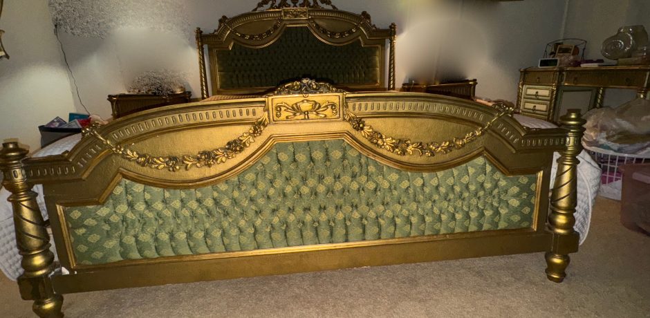 Gold & Green Velveteen Tuck & Roll Bedroom Set – A Woman’s Dream!!!