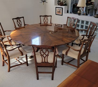 Antiquity Estate Sale! Elegant Furniture – Manhattan Beach 501 5th StreetManhattan Beach, CA 90266 Wednesday 27th October 12pm-7pm Limited sale one-day sale for Manhattan Beach Family who are downsizing: Stone end table 24″ x 24″ x 24″  Stone table with four chairs 47.5″ round Solid oak coffee table, 35.5″ x 26″ x 16″ high Burgundy