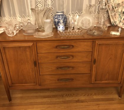 Long time resident! Antiques Antiques Antiques!! Mid Century Buffet – Copenart Bedroom Set – DREXEL – excellent! Coo Coo Clock Tea Cart – Hand painted Curio Cabinets – excellent Secretary cabinet – excellent Wurlitzer Organ Grandfather clock Accent Tables – antique/drop leaf/modern Wicker Furniture – indoor Bird Bath Throw rugs – Large – thick plush Double